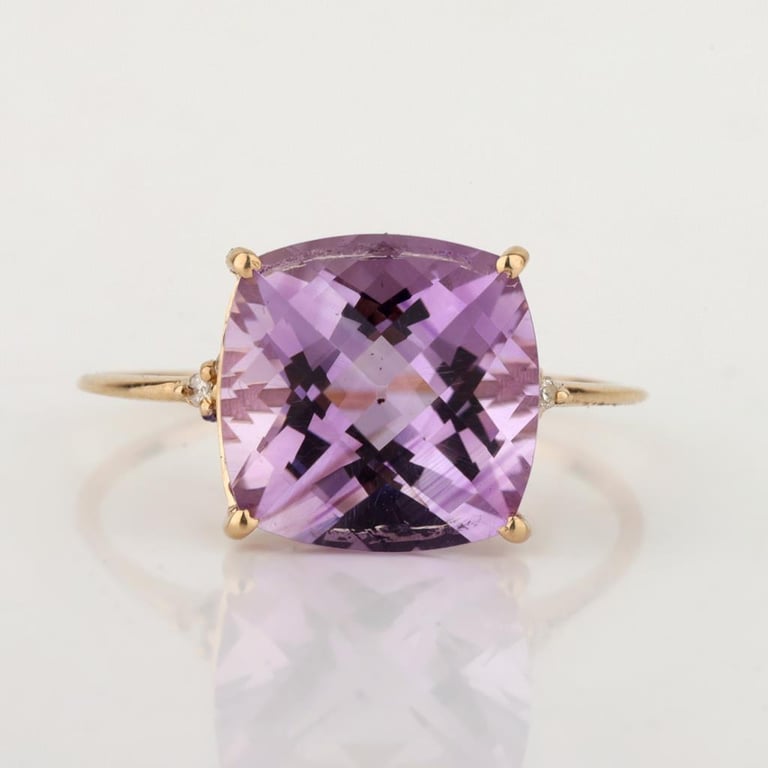 9CT YELLOW GOLD NATURAL AMETHYST & DIAMOND RING Weight Of The Item: 1.64 GFineness Of Metal(S): Yellow Gold 9KtThe Ring Consists Of (1) Cushion Brilliant Natural Amethyst. Surrounding The Main Stones Are Round Brilliant Cut Natural Diamonds.Identification: Natural AmethystColor: PurpleShape: Cushion Brilliant CutNo. Of Stone: 1Dimension: 10 Mm X 10 Mm X 6 MmWeight: 3.95 CaratsCut: Very GoodIdentification: Natural DiamondShape: Round Brilliant CutWeight: 0.06 CtsCut: Excellent.Certificates Are Provided By Gemological Science International (Gsi), An Independent Third-Party Gemological Laboratory Based In The Usa And Recognised Among The Top 10 Gem Labs Globally Markings: 9ct Condition: Good - Refer Images 0488218+24