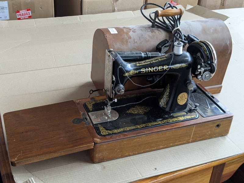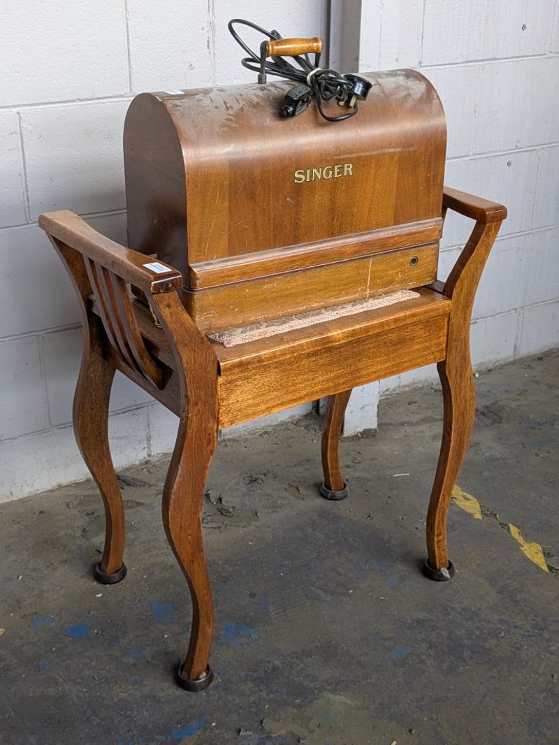 Homewares, including vintage Singer sewing machine and seat with storage Sold as lot