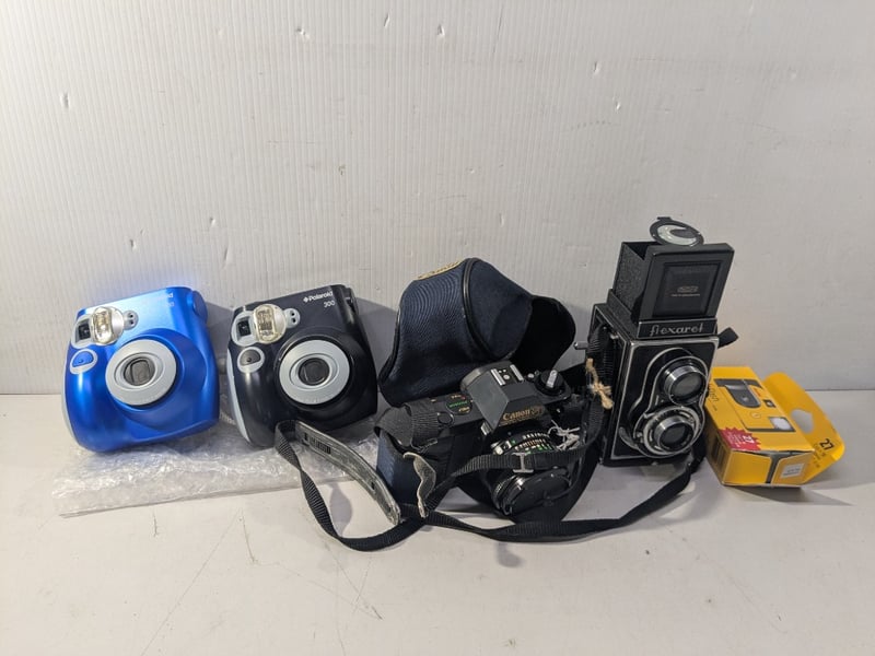 Cameras, including Canon 750, 2 x Polaroid 300 and more Sold as lot
