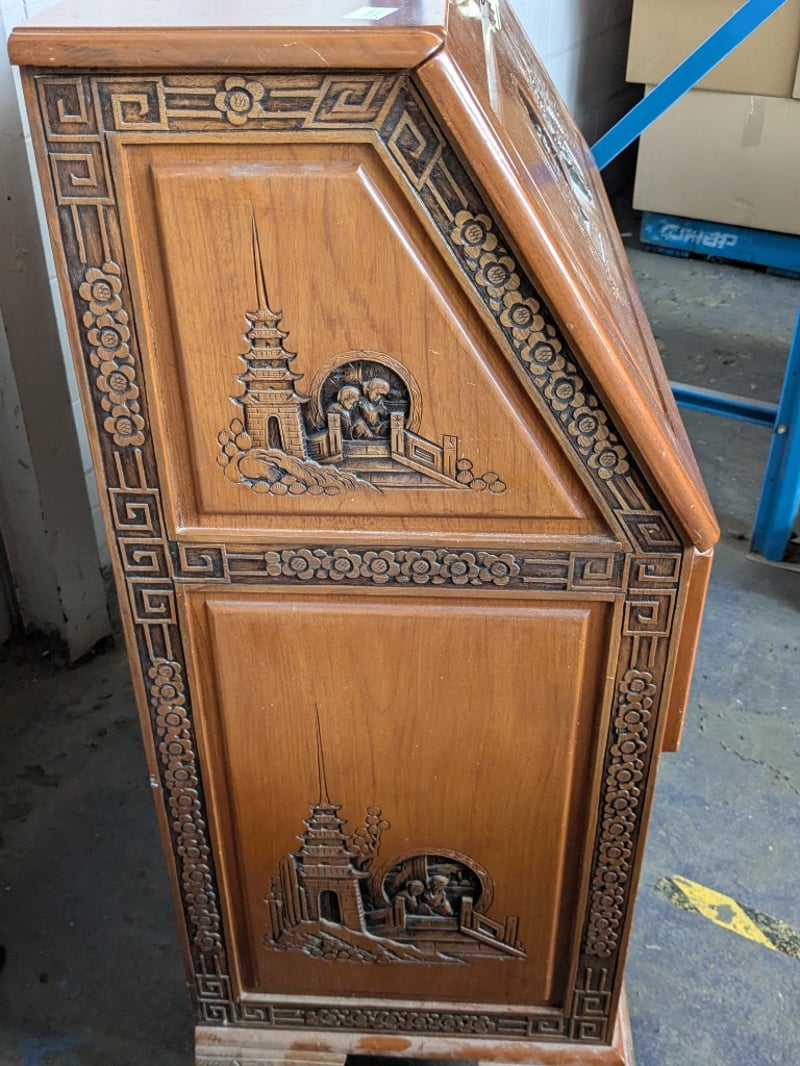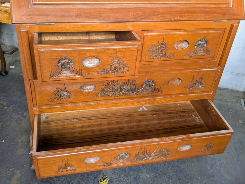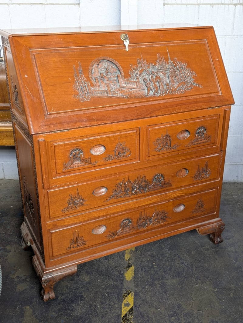 Cabinet, ornament style craved timber writing desk cabinet Dimensions 106cm H x 91cm W x 43cm D