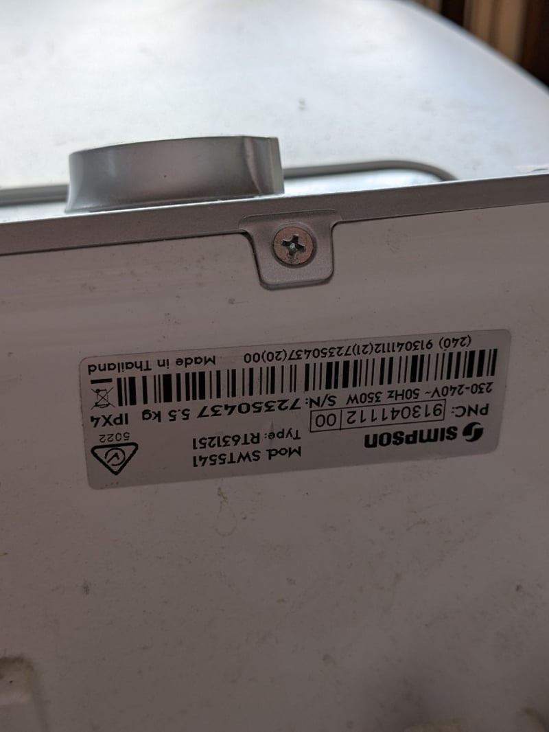 Washing machine, Simpson 5.5kg top load model no. SWT5541