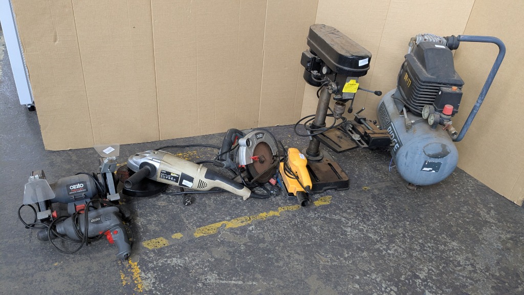Tools, including drill press, sander, bench grinder and more Sold as lot