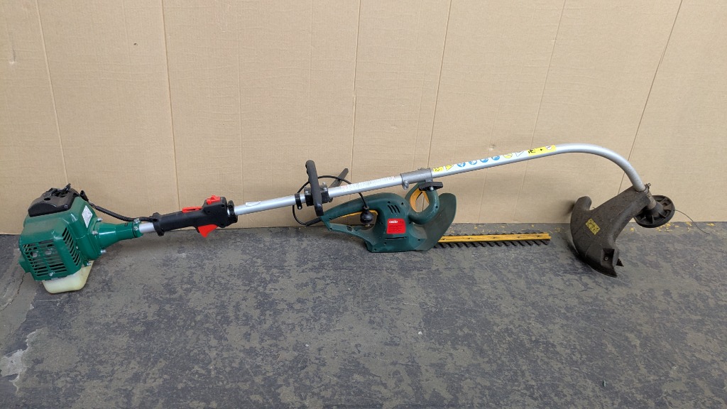 Garden tools, includes Ferrex petrol 2 stroke line trimmer and Ozito hedge trimmer