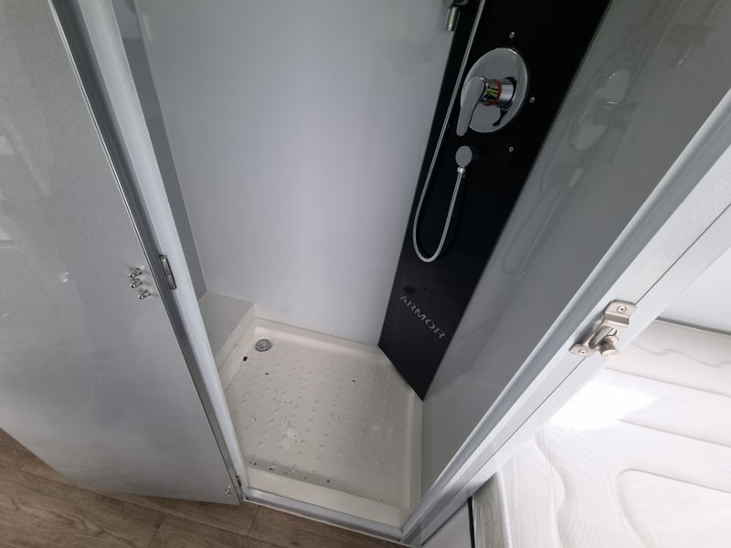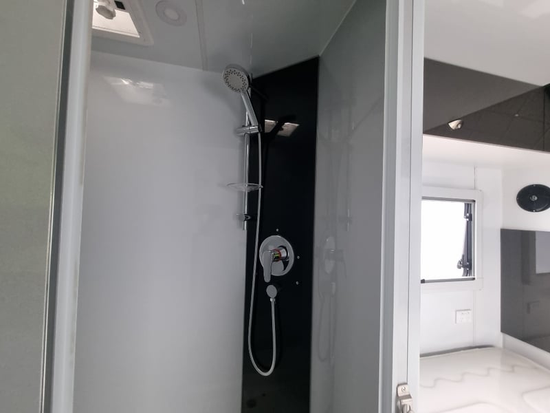 Hot/Cold shower head with RV Side Mounted outdoor shower Tent