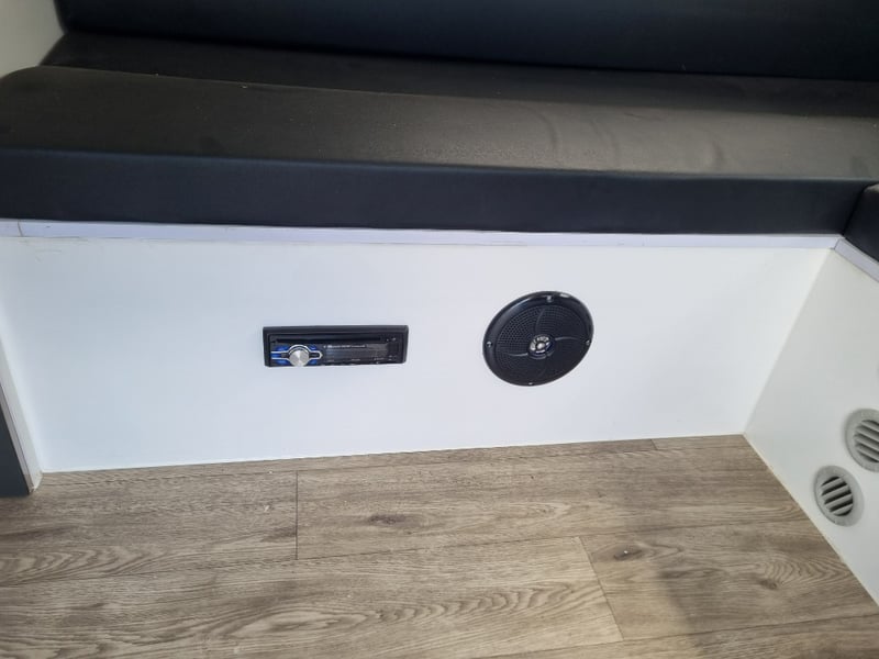 Marine grade CD player with radio function and with 4pcs Anti-UV high pitch grade waterproof loud speaker, inner has 2pcs and out surface has 2pcs