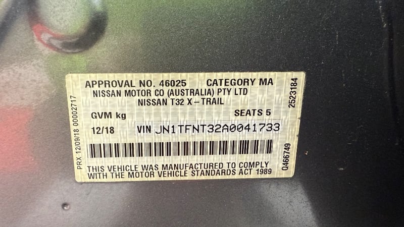 2018 Nissan X-Trail T32 TS Year: 2018 Make: Nissan Model: X-Trail Series: T32 Badge: TS Body: 5-Door SUV Drive Type: All wheel drive Odometer: Indicating 203,672 Kilometres Engine: 2.0 I4 Diesel Transmission: Continuously variable Colour: Grey Seats: 5 Owner's Manual/Service History Price Guide - $13,700 - $16,000 (Based on Unmodified Vehicle) VIN: JN1TFNT32A0041733 ENG No: M9RA868C090840 (as per PPSR) #PCV #TENTOTWENTY (Key #C18x2 Carrara) Lloyd's stock #587323+1