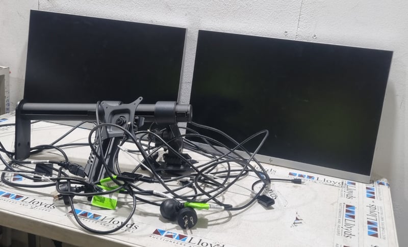 Office Essentials - Monitors, brackets, HDMI cords, power cordsNote: All lots are allocated in bulk. Photos serve as a reference only and the contents of each box may vary. Some boxes may not include Monitor stands, Monitor Models may Vary.
