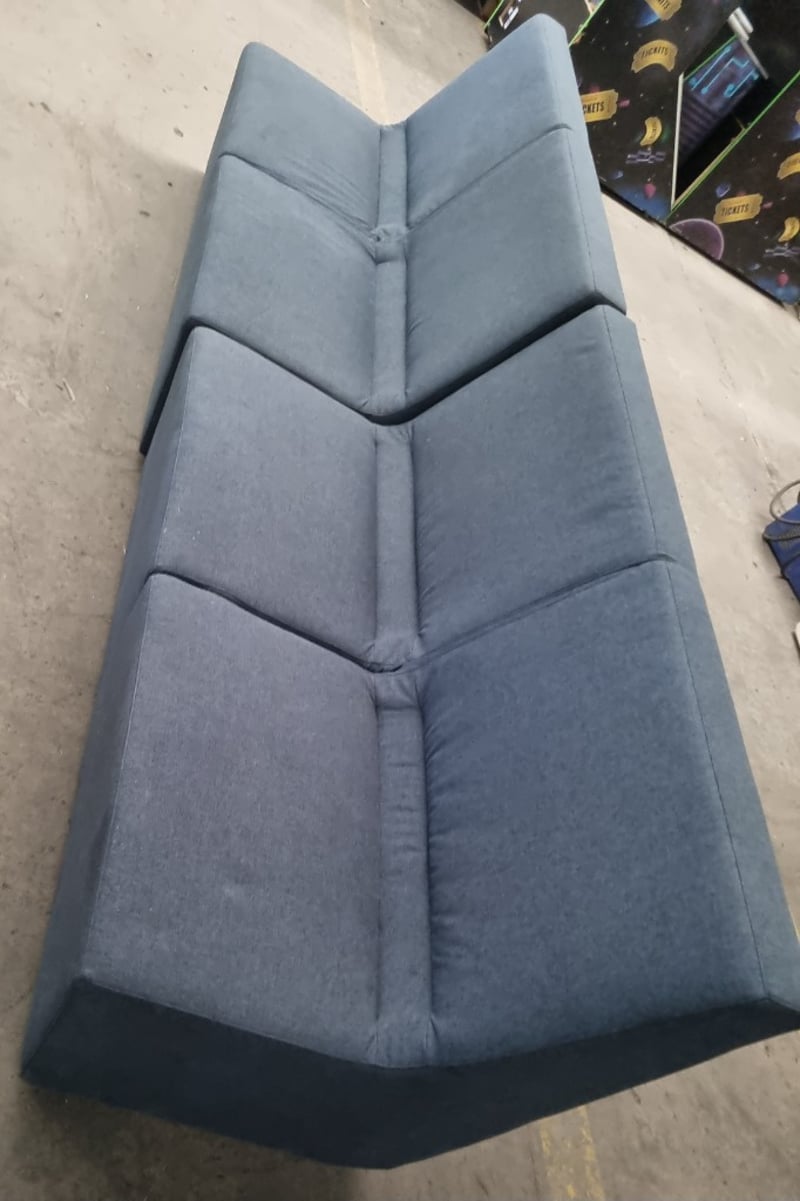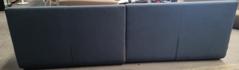 Office furniture, 2 x upholstered blue lounge suite office set. Dims: 130 x 60 x 130cmNote: some fade in upholstery