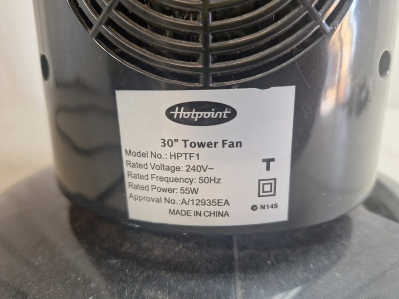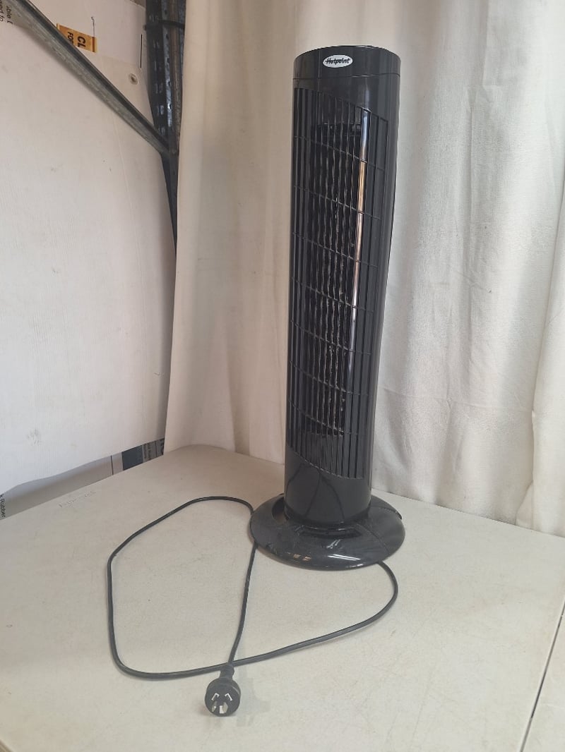 Tower Fan, Hotpoint, 3 speed level, Black finish. Dimensions: 77cm x W 30cm x D 30cm.