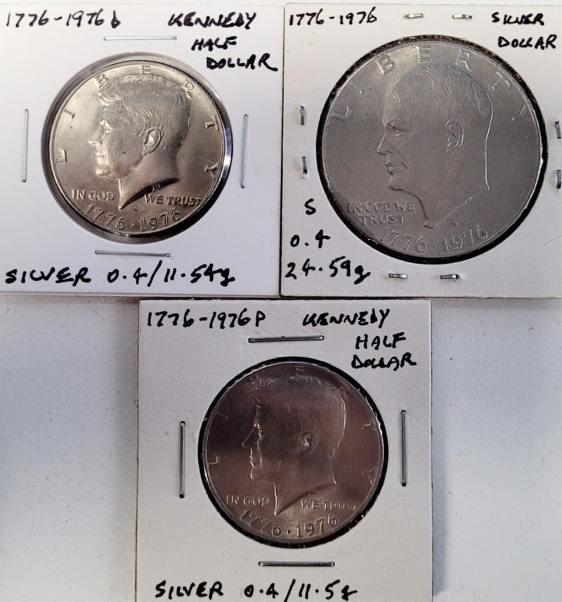 COLLECTION OF 1776 - 1976 SILVER US COINS2X Kennedy- Very High Grade 1X Eisenhower- Very High Grade Silver 0.4/11.5G - Each Kennedy 0.4/ 24.59G - Eisenhower488274+33