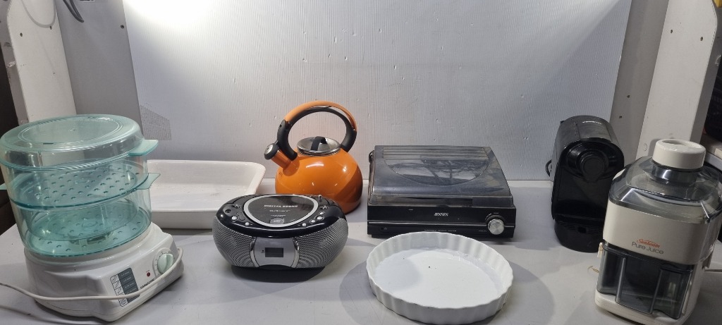 Homewares, assorted homewares including Juicer, record player, Steamer and more Sold as lot