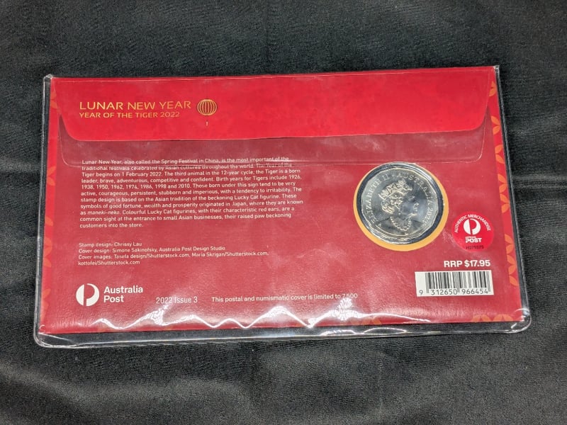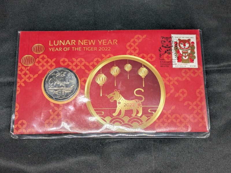 Includes Two 2024 Year Of The Dragon 50 Cent Coins, 2022 Year Of The Tiger 50 Cent Coin And Cover Stamp, 2024 Year Of The Dragon One Dollar Coin With Cover Stamp.