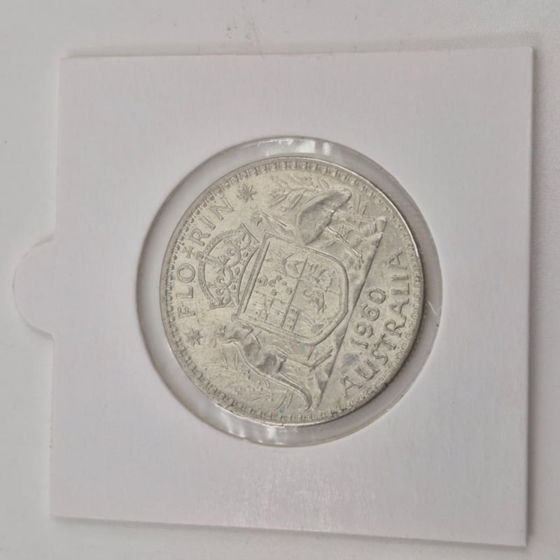AUSTRALIAN COIN Australian 1960 Florin Silver Coin. Condition: AUNC 587658+59