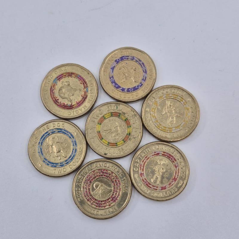 AUSTRALIAN NOTE Seven Royal Australian Mint Different Dates Colorised $2 Coins. Condition: High Grade587658+80