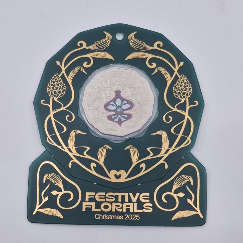AUSTRALIAN COIN Royal Australian Mint 2025 Festive Florals Christmas Green Colorised Coin. Condition: Uncirculated587658+82