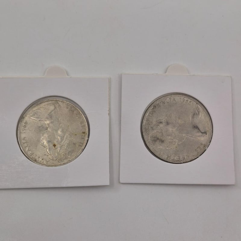AUSTRALIAN COIN Two Australian 1966 Round Silver Fifty Cent Coin. Condition: High Grade587658+98