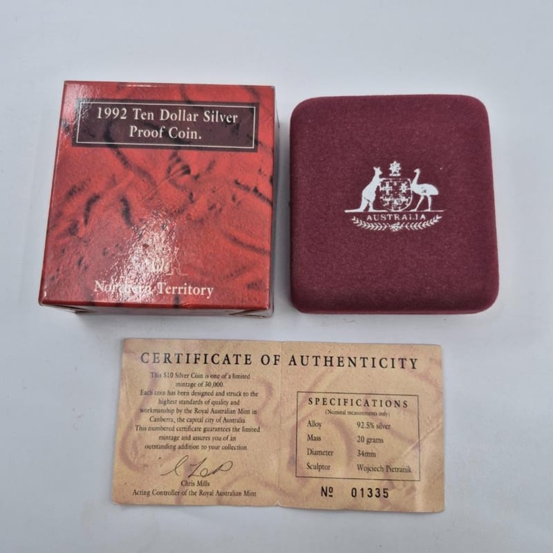 AUSTRALIAN COIN Royal Australian Mint 1992 State Series Northern Territory $10 Silver Coin. Condition: Proof587658+110