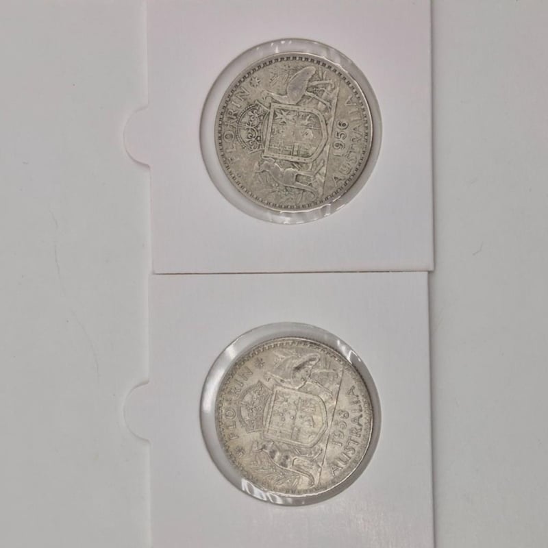 AUSTRALIAN COIN Two Australian 1956 & 1958 Silver Florin Coin. Condition: High Grade 587658+183