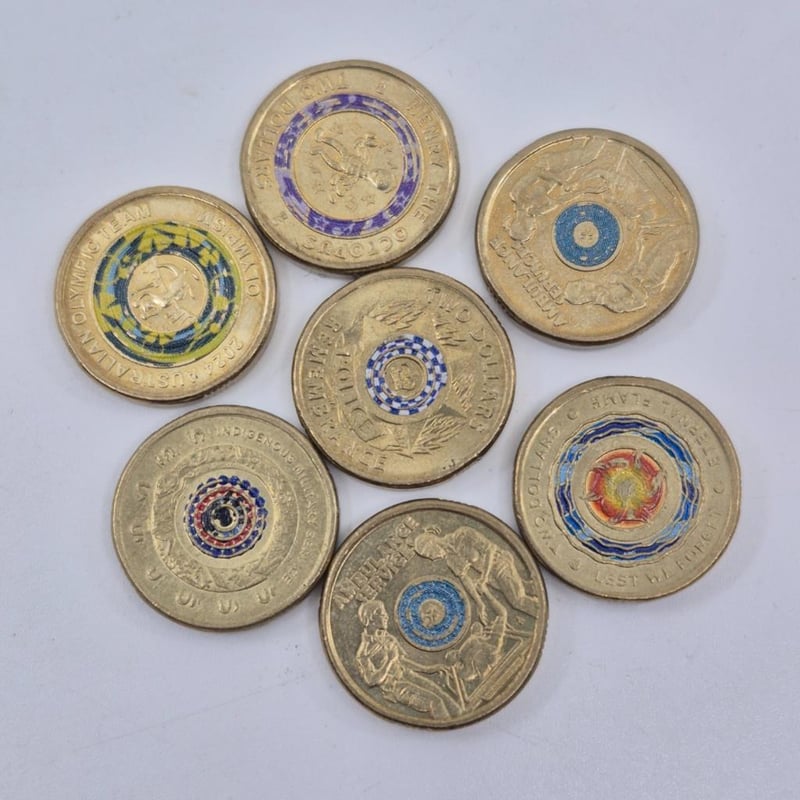 AUSTRALIAN NOTE Seven Royal Australian Mint Different Dates Colorised $2 Coins. Condition: High Grade587658+75