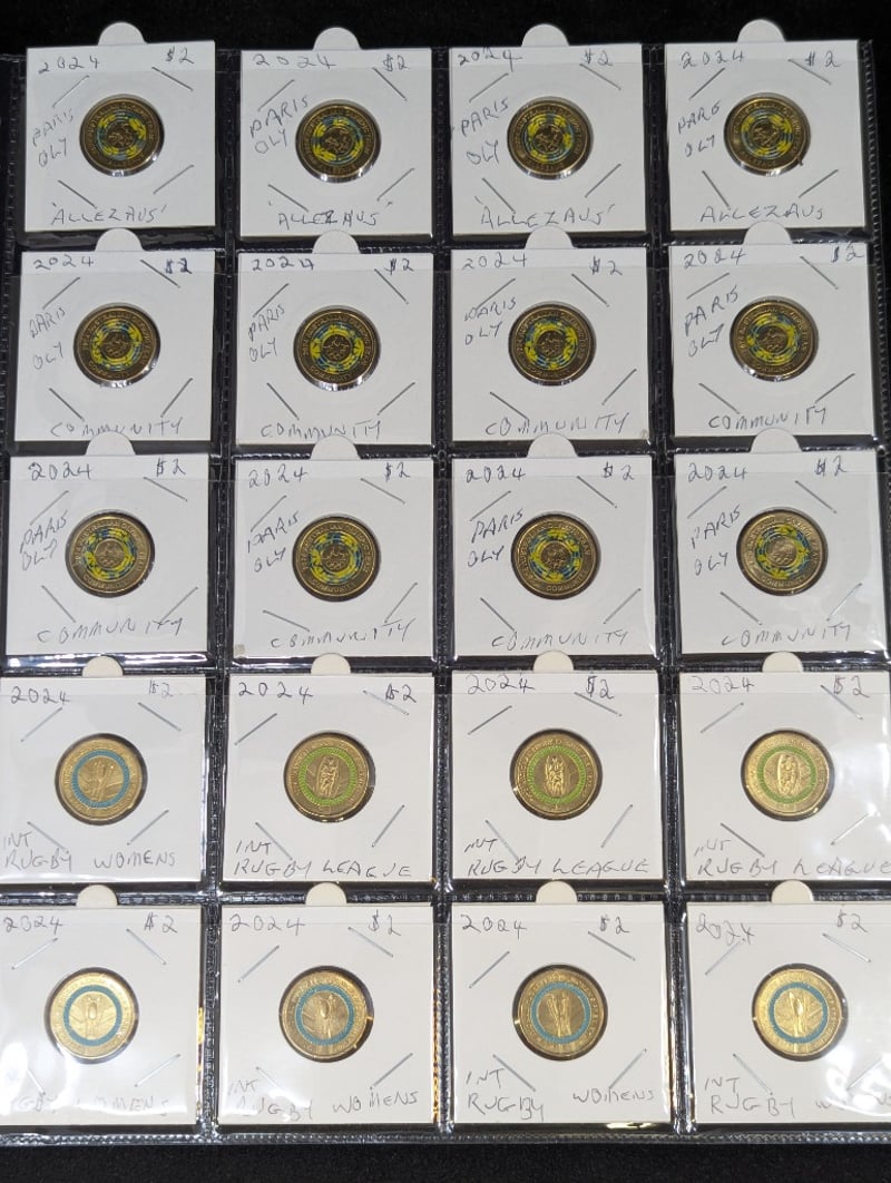 TWENTY AUSTRALIAN TWO DOLLAR COINSCoins Include 2024 Australian Olympic Team - Allezaus, 2024 Australian Olympic Team - Community, 2024 Rugby League, 2024 National Rugby League Womens Premiership, EtcConditions Range From Approx: Vf - Ef584893+22