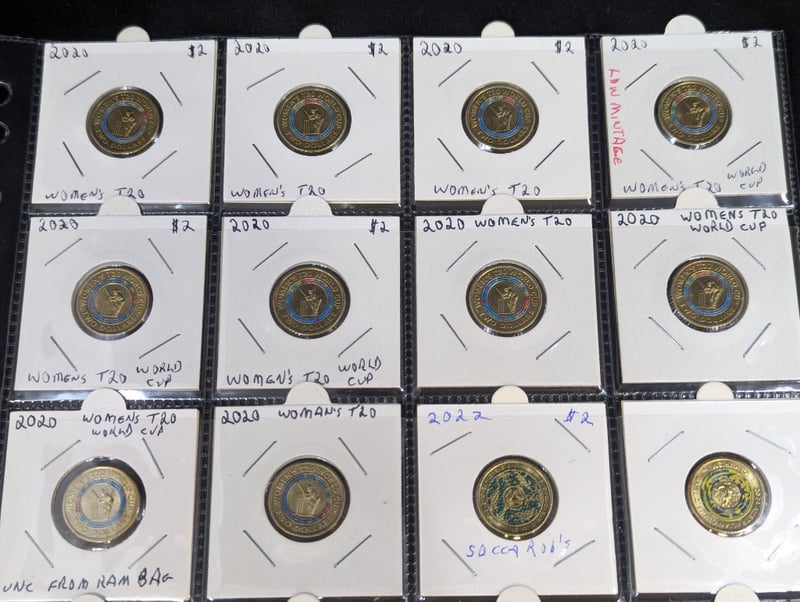 TWENTY AUSTRALIAN TWO DOLLAR COINSCoins Include 2020 Womens T20 World Cup, 2022 Socceroos, 2024 Australian Olympic Team, 2019 Wallabies Australia, EtcConditions Range From Approx: F - Ef584893+32