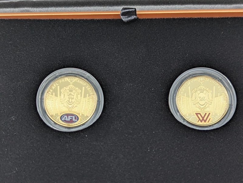 ROYAL AUSTRALIAN MINT 2004 FOOTBALL LEAGUE TWO COLOURED COIN SET