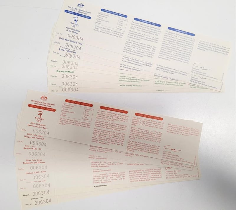 THE PERTH MINT SYDNEY 2000 OLYMPIC SILVER PROOF COIN SET COLLECTIONProvenance: Complete Proof Set In Original Jarrah Wood Case and Individual Certificates for Coins488274+117