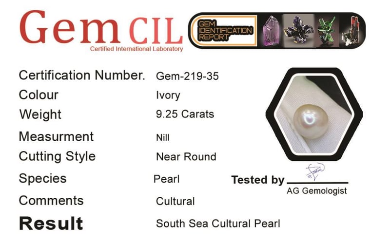 9.29 CARATS SOUTH SEA PEARL 9.29 Carats South Sea Pearl Stone = South Sea Pearl Weight = 9.29 Carats Colour = Ivory Treatment = Cultural Quantity = 1 Note = Gem Cil, Certified, Condition: Good 645399+35