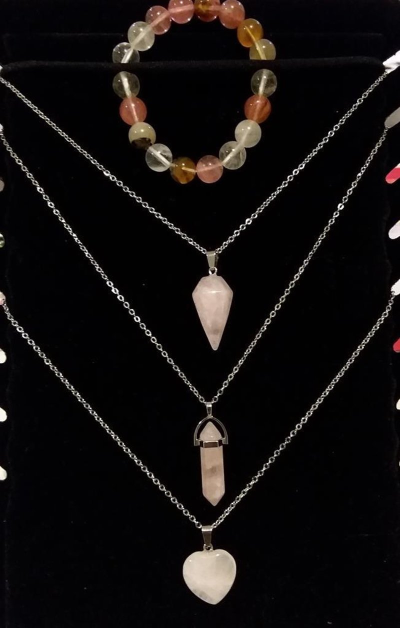 3 ROSE QUARTZ PENDANT NECKLACES AND GEMSTONE BRACELET Condition: Good - Refer to Images 0162882+11FC