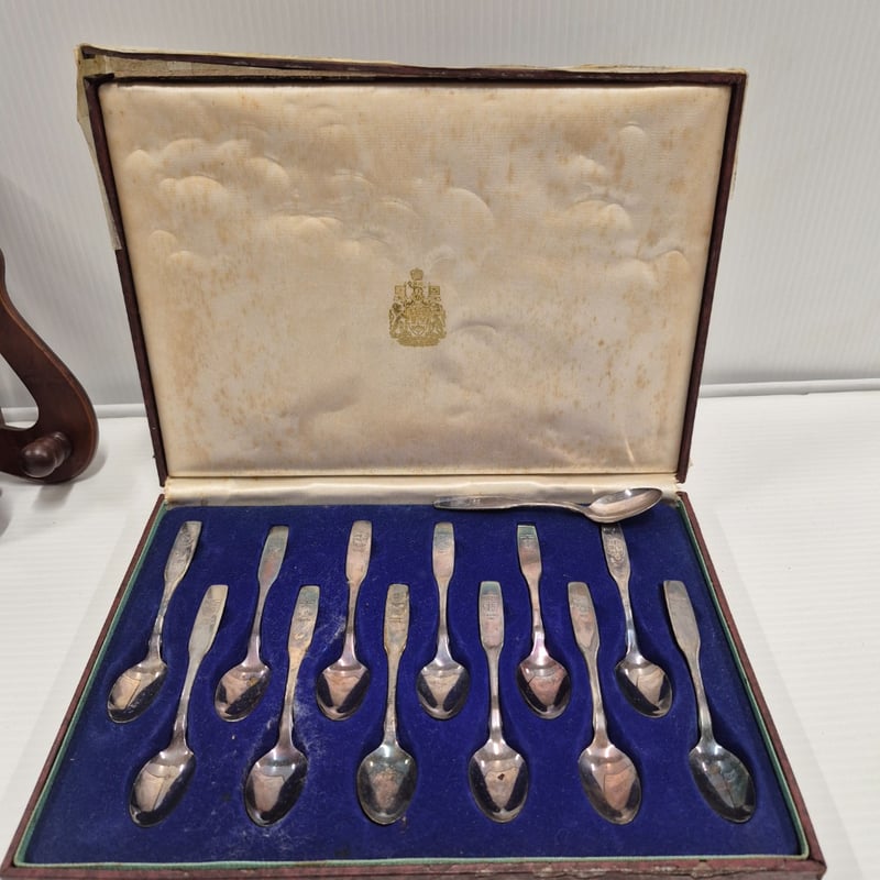 2 VINTAGE PLATE STANDS AND COLLECTION OF SILVER TONED SPOONSItem Size: Height: 10cm, Width: 20cm, Depth: 30cm, Weight: 1KgCondition: Good - Refer To ImagesLOCATED RACK 10B586114+8