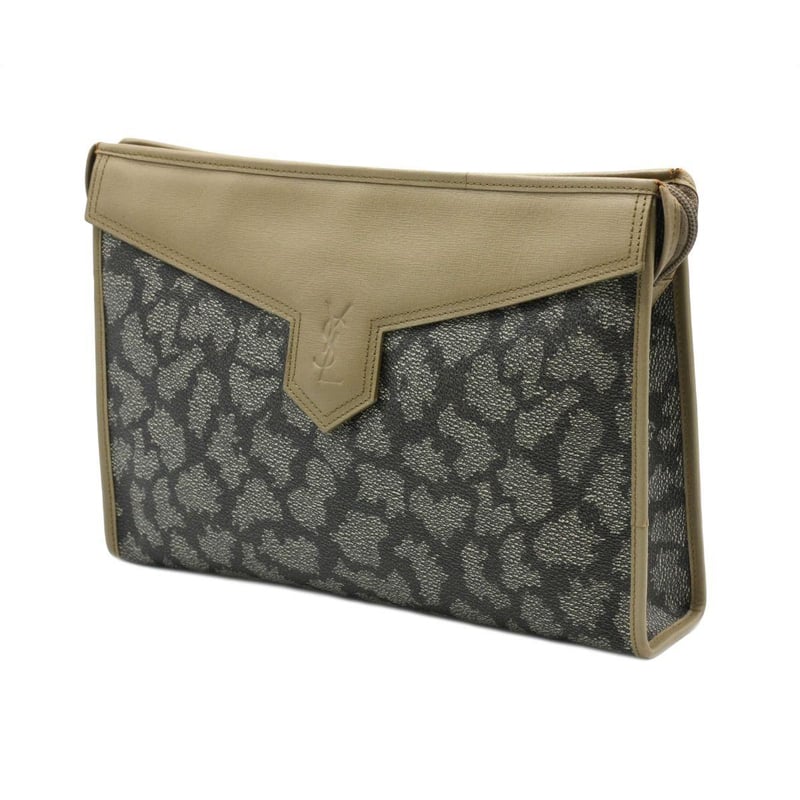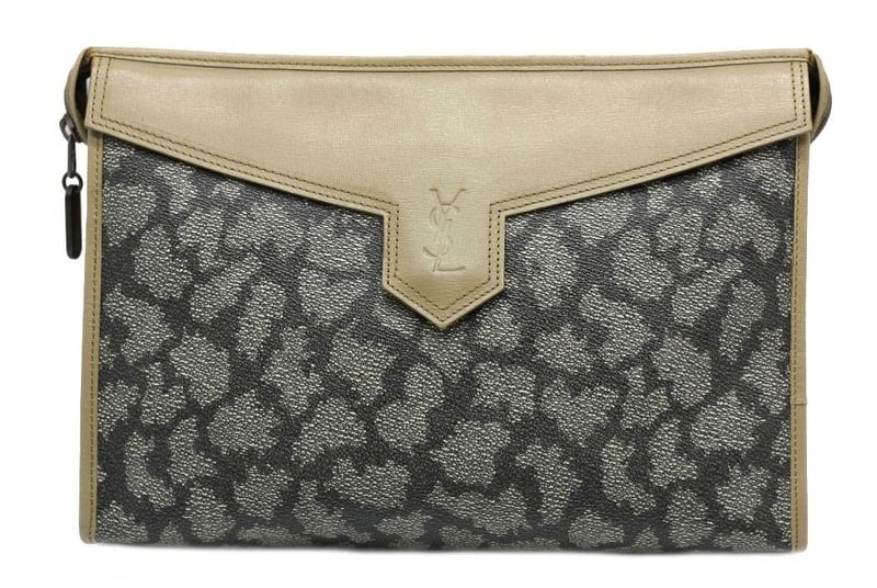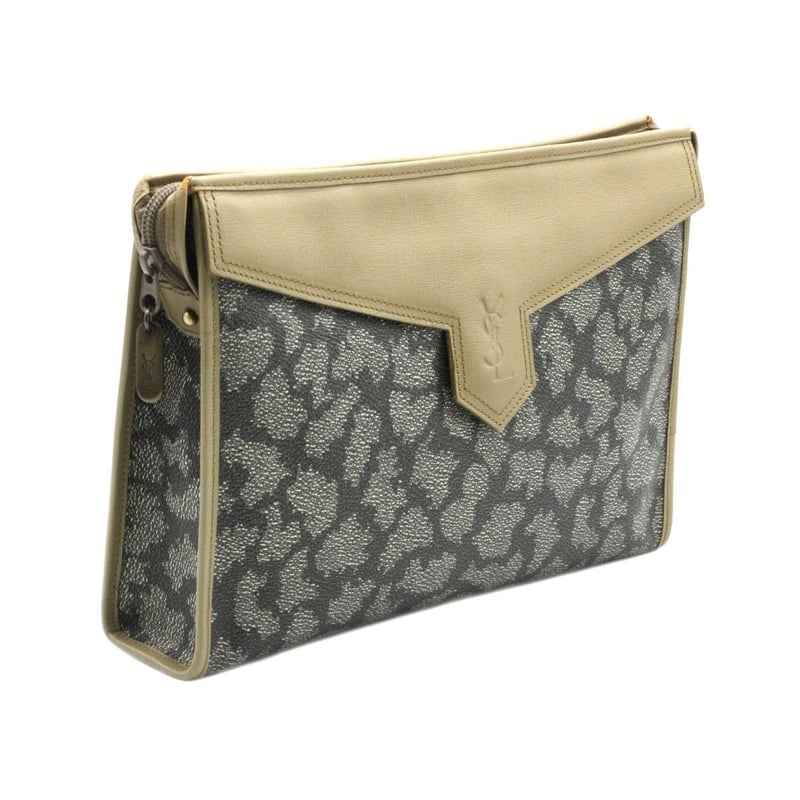 SAINT LAURENT GIRAFFE PRINT COATED CANVAS CLUTCH