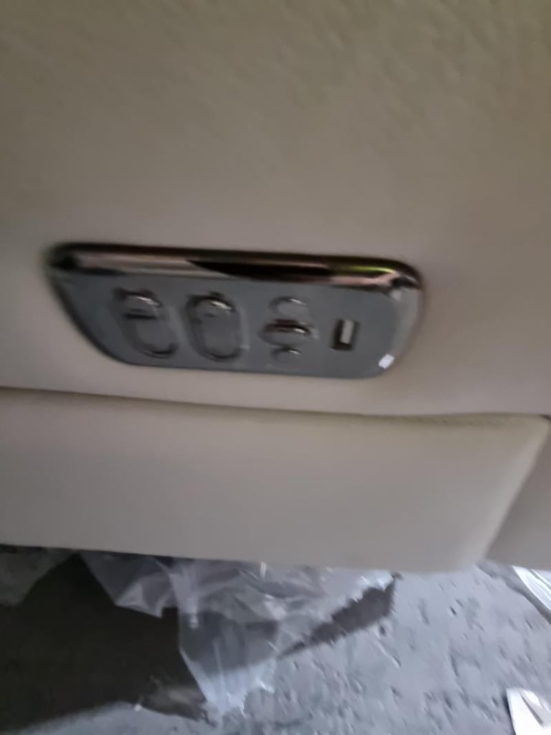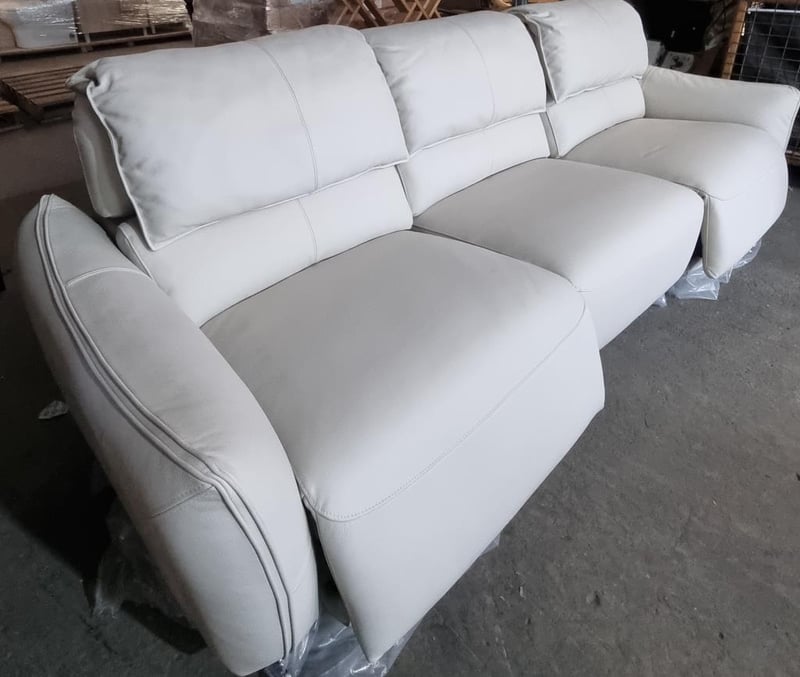 RRP $7699 Constance 3-Seater Electronic Reclining Couch, Synthetic Leather, USB Charging Port, Adjustable Footrest, Frost White Approx Dims: 97 × 266 × 101cm Note: Items may have signs of water damage. Power cable not sighted.