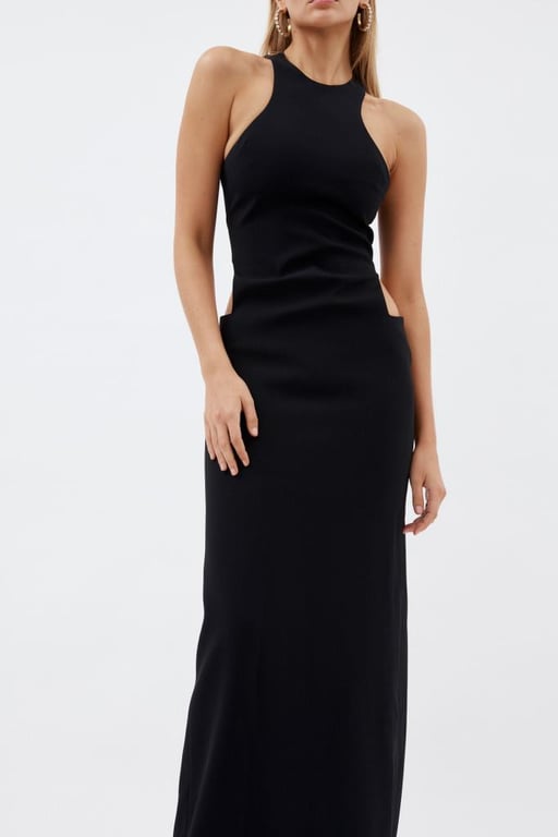 RRP $1690 Size 4 Monot Racer Cut Black Dress With Cut Outs