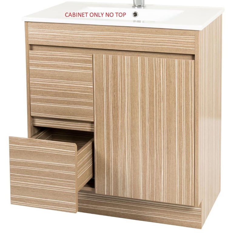 Wall hung vanity cabinet, Lima, lim75whltcab Light timber grain, 750mm wide, 1x drawers, 1x door, in original box