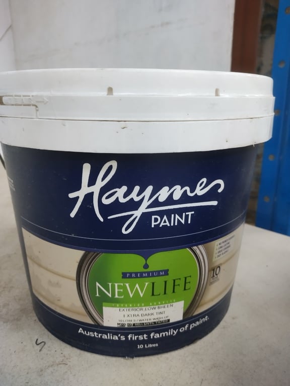 PAINT, HAYMES, NEW LIFE, EXTERIOR LOW SHEEN EXTRA DARK TINT, 10LBID PER LITRE MUST TAKE 10 LITRES
