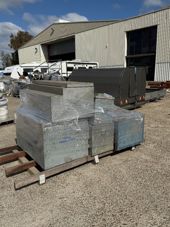 assorted metal tool boxes, various sizes SOLD AS LOT