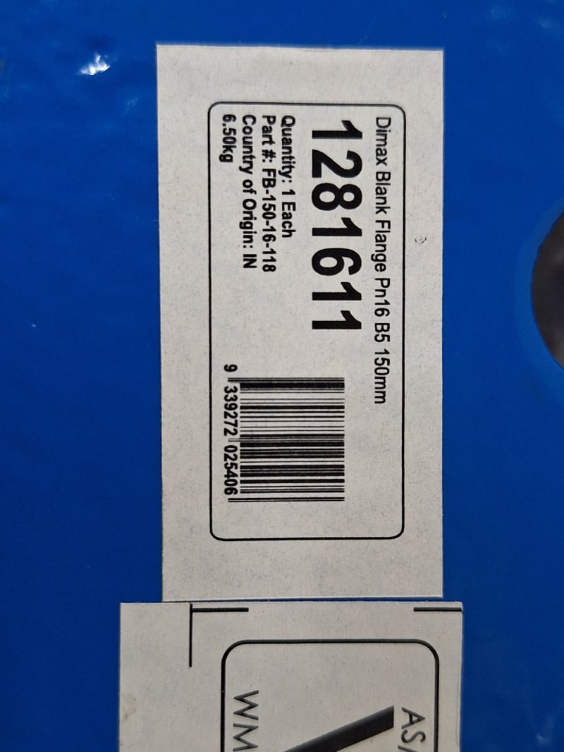 Blank Flange, Dimax, 1281611, Part No 16B5, 150mm