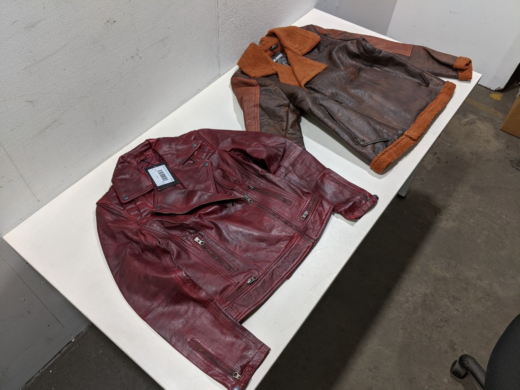 Lot of 2 Women's Leather Jackets – Size XS - Kimberley, Maroon Wax - Dean Ambrose Shearling, Dark Brown Sold as lot
