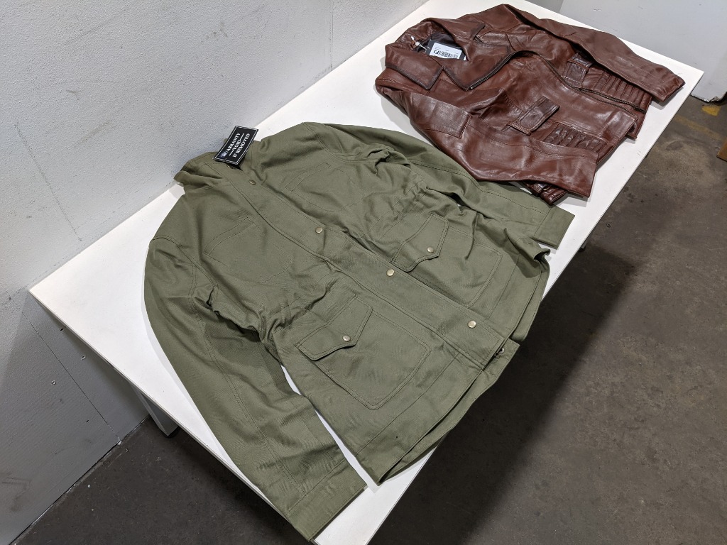Lot of 2 Women's Leather/Cotton Jacket – Size XL - Caitlin Women Utility Jacket, Green - Edna Jacket, Brown Sold as lot