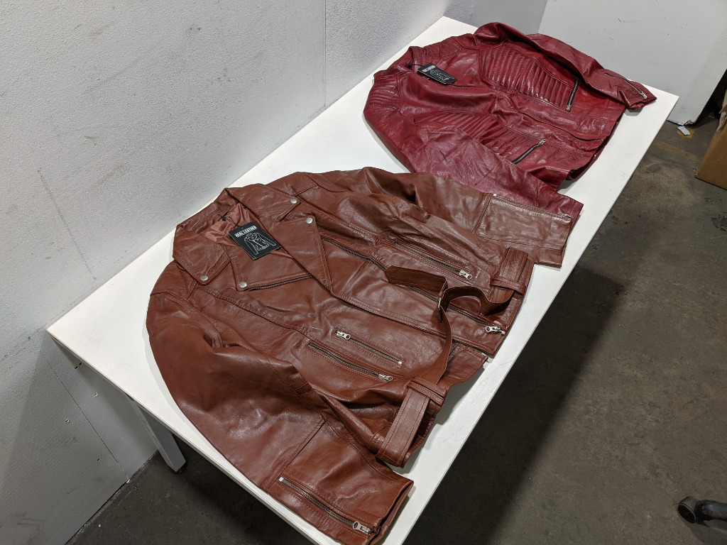 Lot of 2 Women's Leather Jackets – Size 3XL - Aldo, Tan - N-185, Maroon Wax Sold as lot