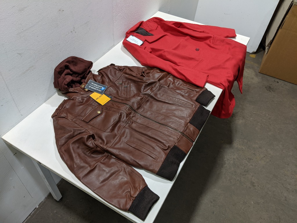 Women's Leather Jacket & Wool Coat – Size M - Edinburgh, Dark Brown - Diane Single Breasted Wool Coat, Red Sold as lot