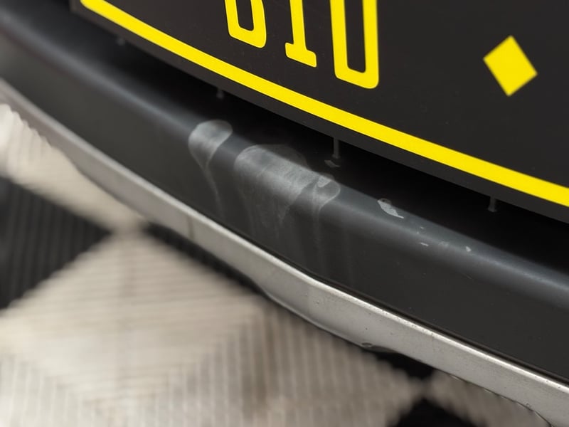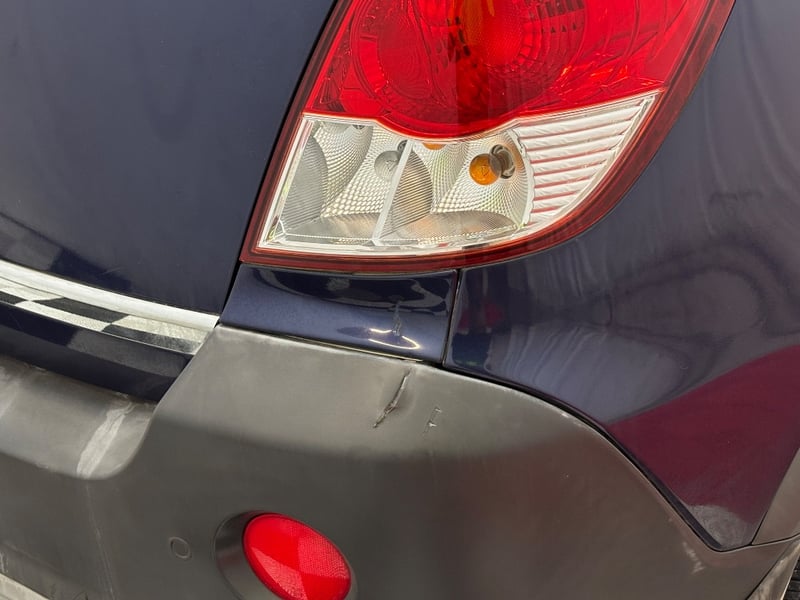 - Rear emblem badging is damaged.