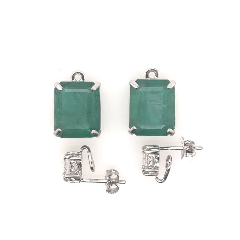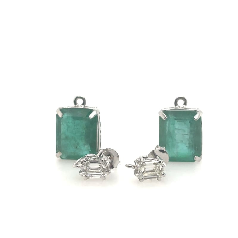 18K WHITE GOLD EMERALD AND DIAMOND EARRINGS WITH EMERALD ENHANCERS