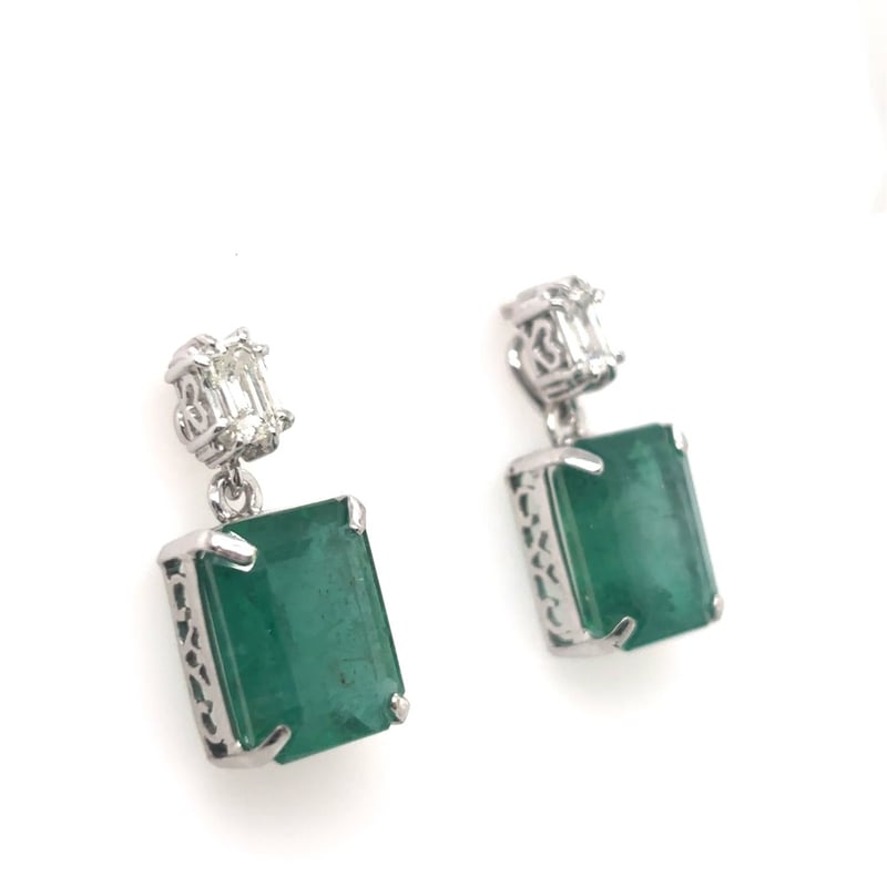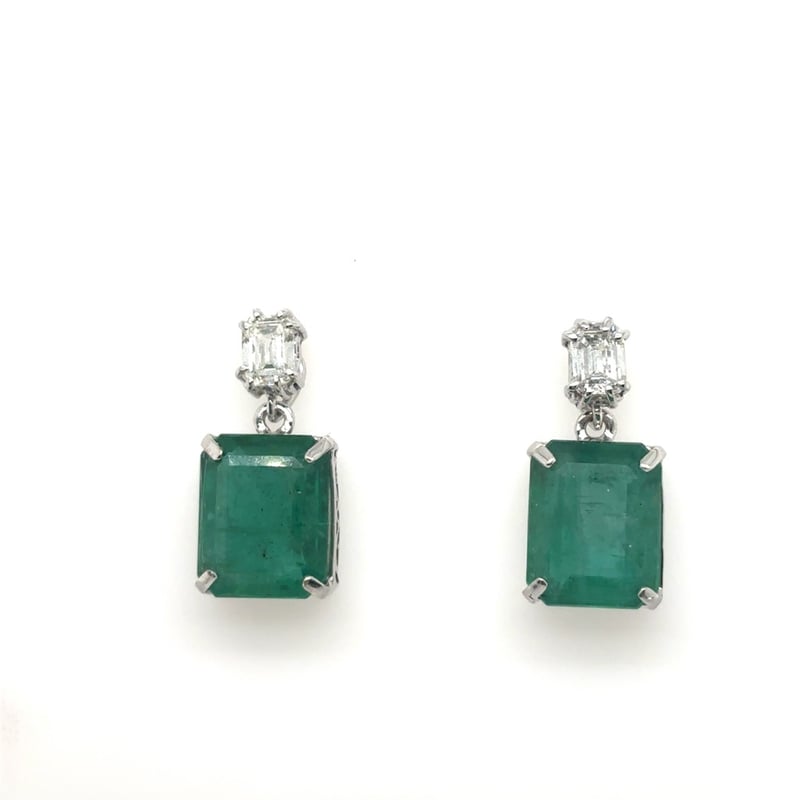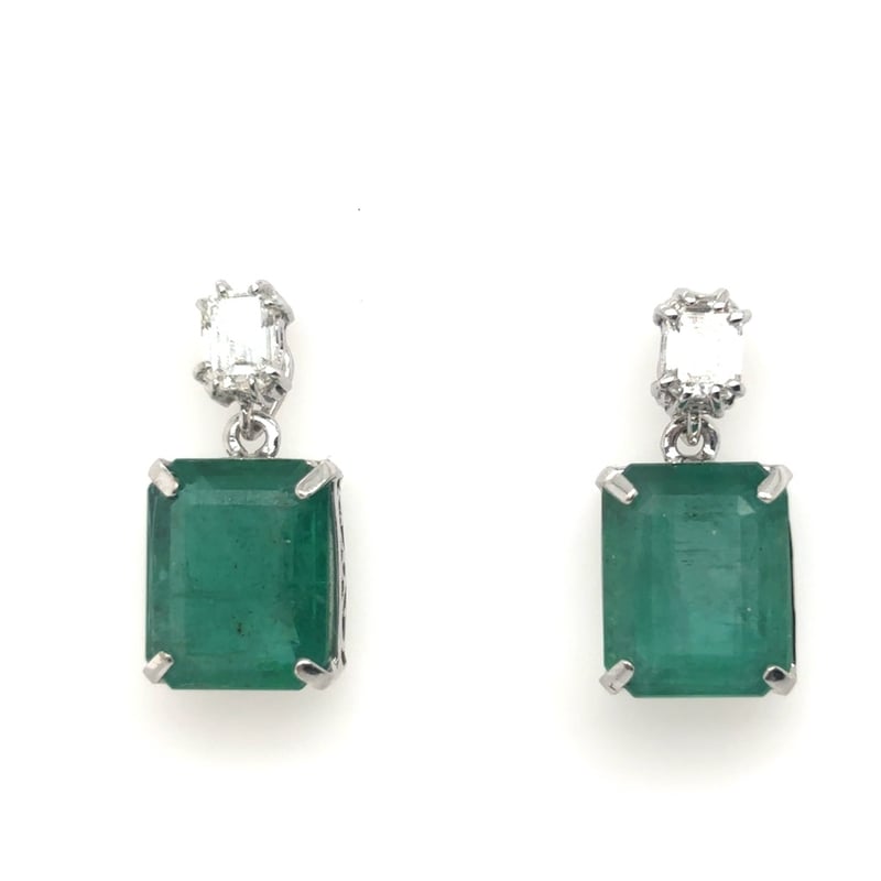 Featuring 2 emerald cut natural Zambian emeralds, claw set: