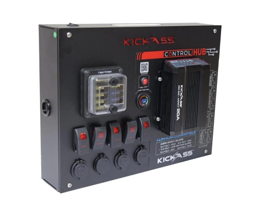 RRP $699.95, KickAss 12V Control Hub / Panel with 20A DCDC Charger, SKU: KACTRLHBDCDC