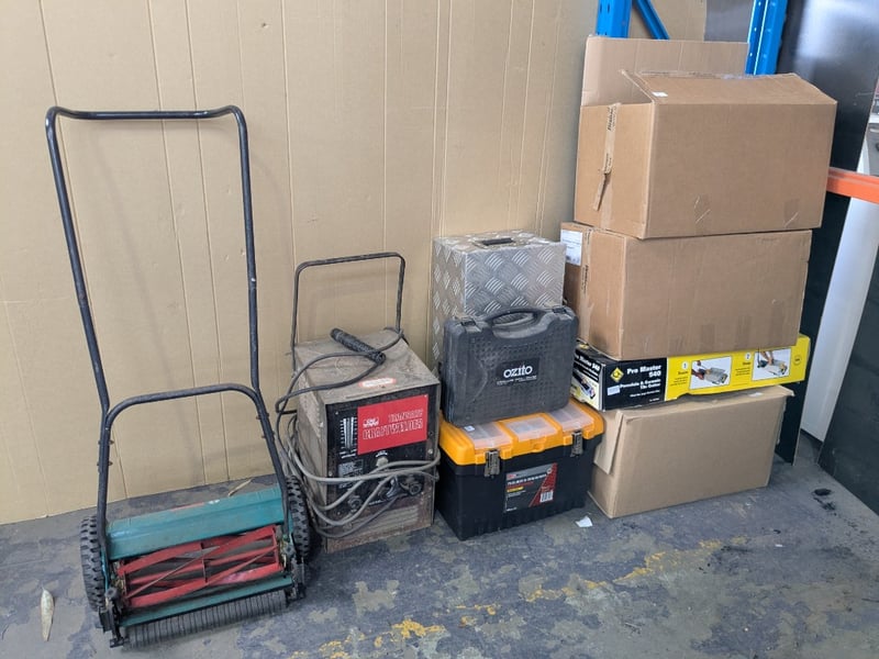 Tools, includes Arc welder, assorted hand and power tools and more Sold as lot
