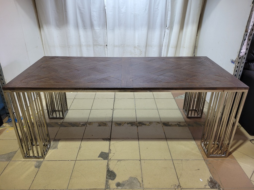 Dining Table, Brown Timber Finish with Silver LegsDimensions H: 78cm W: 90cm D: 200
