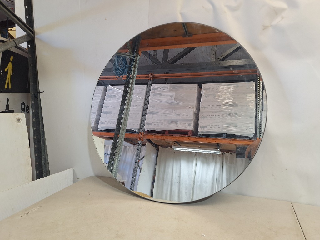 Round Mirror, Wooden base under mirror with mounting screw holes allocated.