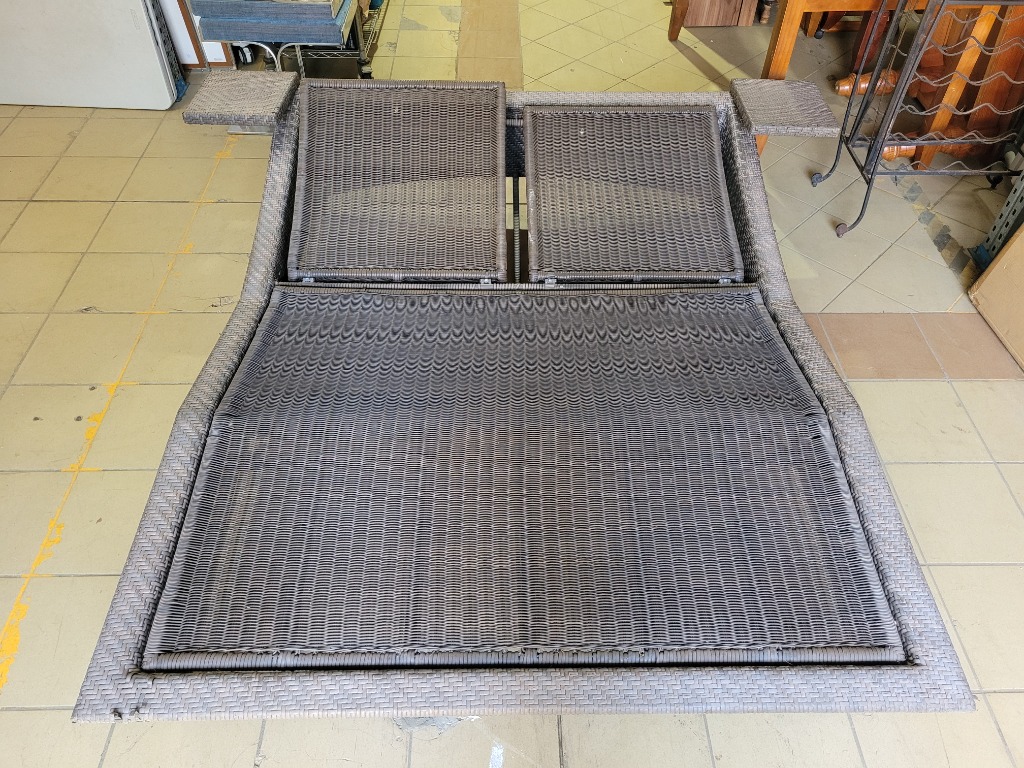 Sun Lounge, x2 Detachable Side Tables, Brown Finish, Rattan Style