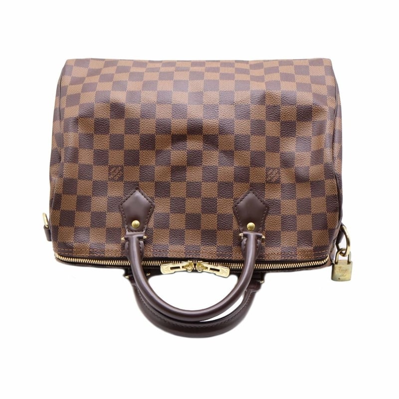 LOUIS VUITTON DAMIER EBENE CANVAS SPEEDY BANDOULIERE 30 BAGItem Size: Height: 25cm, Width: 30cm, Depth: 17cmExterior MaterialDamier Ebene Canvas And Leather Trim With Gold-Tone Hardware, Dual Rolled Leather Top Handles, Top Zip Closure And A Shoulder Strap.Interior MaterialTextile Lining With A Main Compartment And A Zipped Pocket.Additional Condition Report- Minor Sign Of Wear And Tears On Exterior- Minor Wear In Interior- Sign Of Wear And Scratches On HardwareComes With- Original Dustbag- A Detachable Strap- Certificate Of AuthenticityCondition: Good - Refer To ImagesCROSSDOCK162909+97
